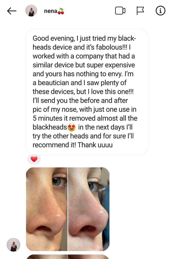 Most ladies see the blackheads & impurities removed (in the nozzle) after the very first use.
